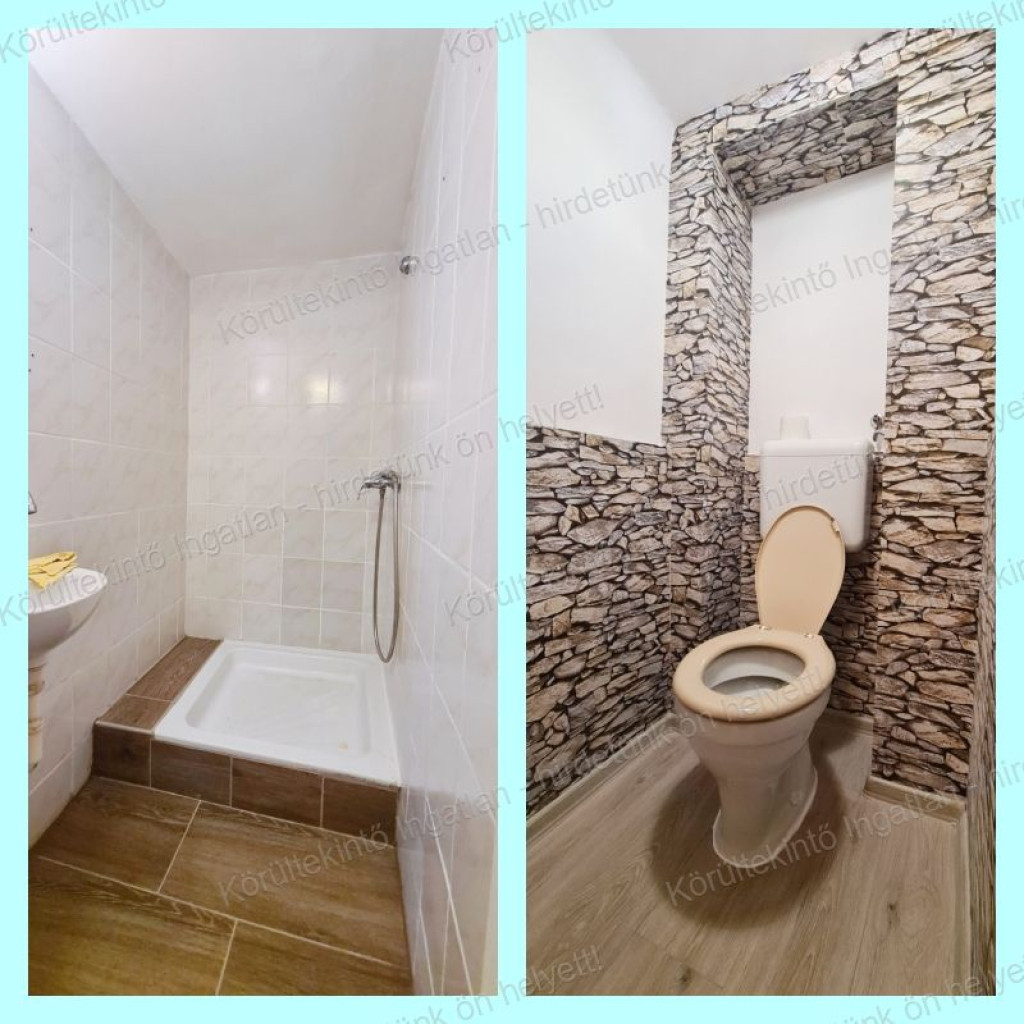Az épület a 80-as években, téglából épült. A lakás helyiségei: Konyha étkező nappali 12,5 m², Szoba 17 m², előszoba 6 m², közlekedő 2,1 m², fürdő 2 m², WC 1,36 m².