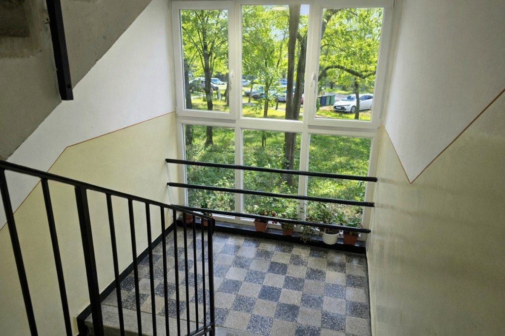 a lépcsőház nyílászárói is cserélve lettek, beleértve a bejárati ajtót is