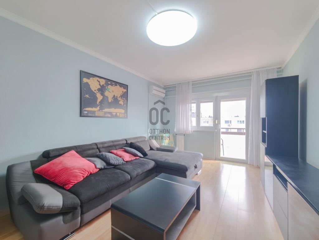 - 11. emeleti, 54 m2-es + 3 m2 erkély, 3 szobás, jó állapotú ingatlan.