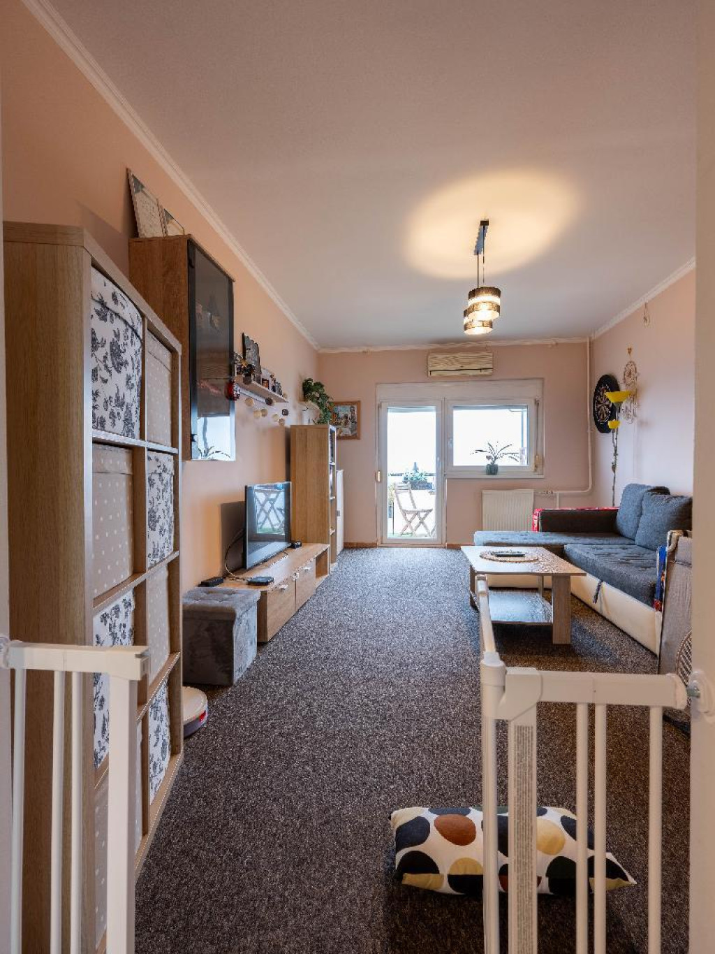 A nappaliban egy klíma segíti a nyári meleg elviselését.