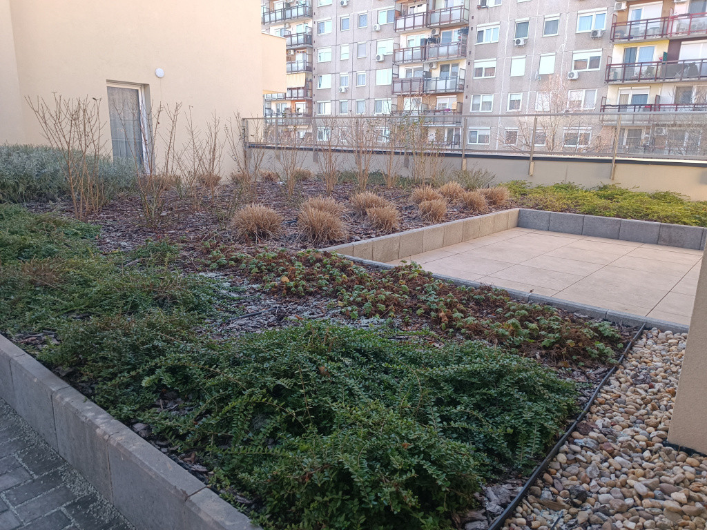 A 2024-ben épült társasház minden igényt kielégít. Geotermikus hűtés-fűtéssel, zöld tetőkerttel, hatalmas belső kerttel, energiatakarékos megoldásokkal várja lakóit.