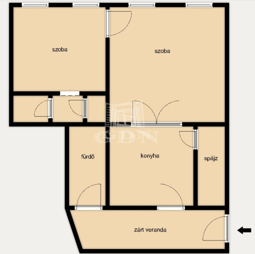 1./ Verandáról nyíló, 42 nm, 1 szoba, konyha, fürdőszoba, gázkonvektor fűtés. Ár: 38 000 000.-Ft
