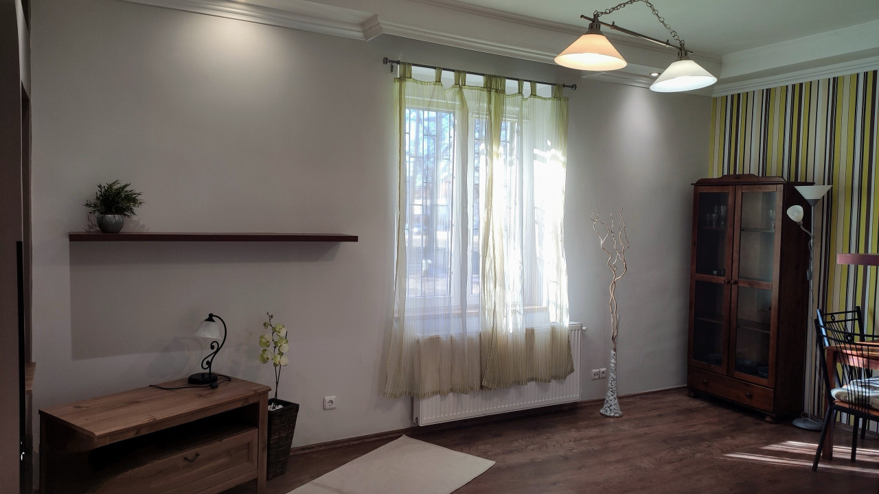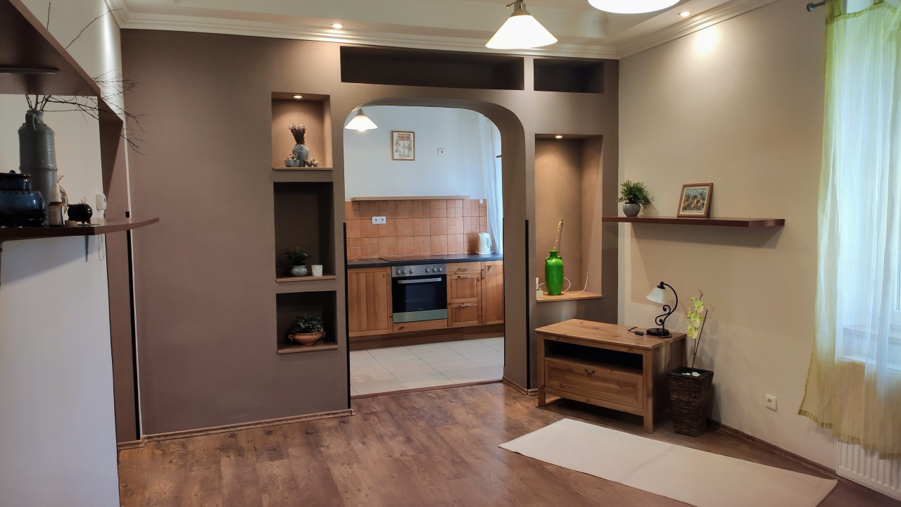 Földszintes, önálló fűtéssel rendelkezik ( Saunier Duval cirkó, bélelt kéménnyel), műszakilag és esztétikailag, teljes körűen felújított. Ikeá-s konyhabútor kerámialapos tűzhely, a hálóban egy beépített szekrény a tartozék a lakáshoz.