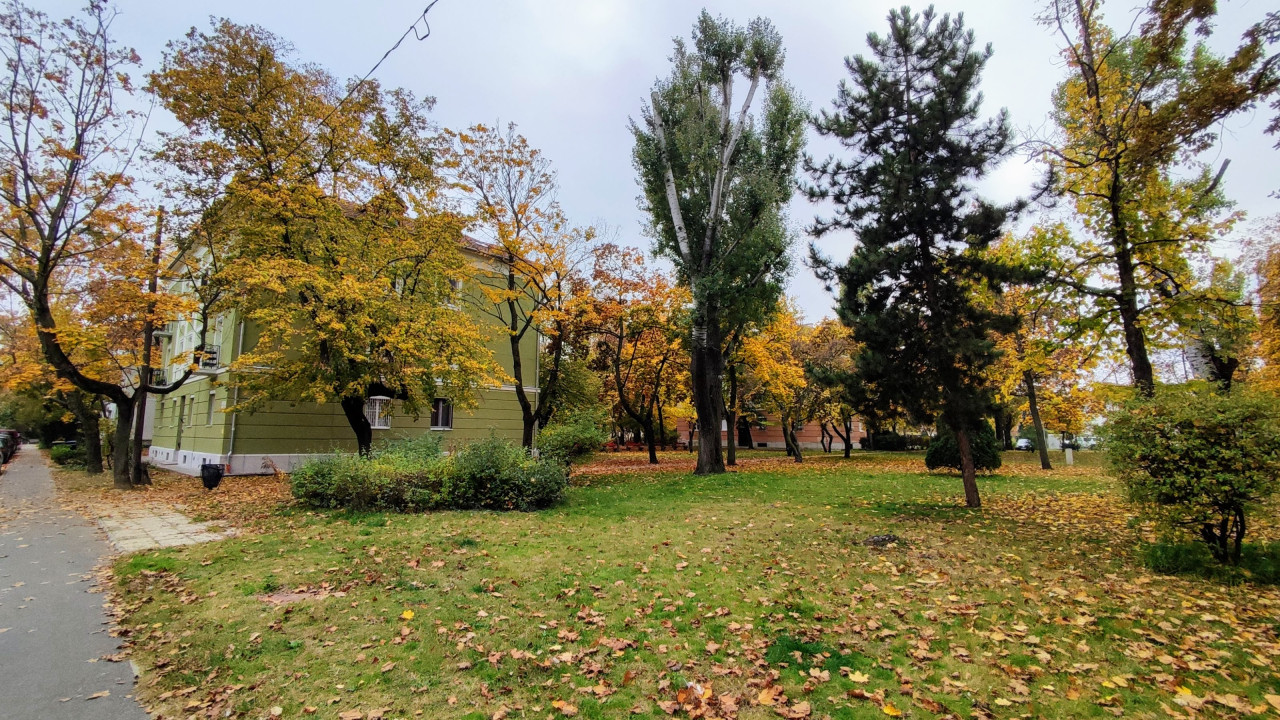 Autóval parkolni ingyenesen a társasház előtt lehet, és mindig van hely. Hatalmas fák vannak a ház előtt, melyek egy kis árnyékot és szép zöld látványt adnak a lakásnak is.