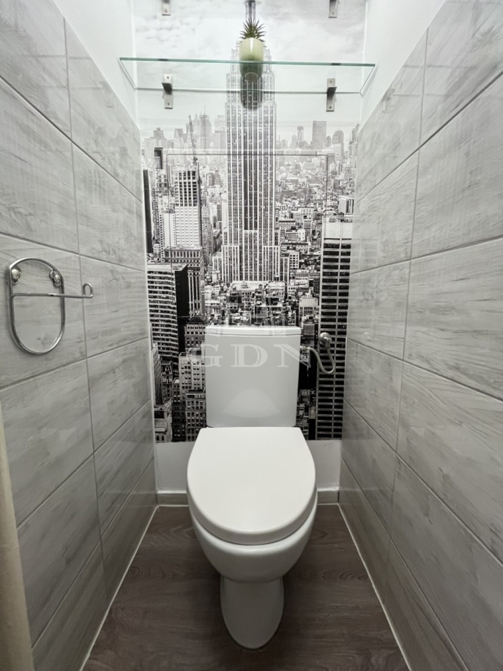 - Modern fürdő zuhanykabinnal, törölközőszárítóval
