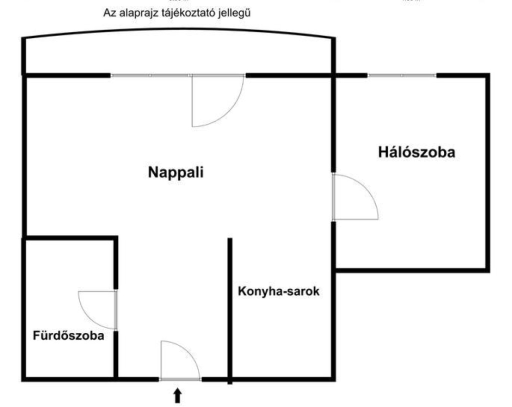 A 43 m²-es hangulatos otthon a földszinten helyezkedik el, nappali plusz háló, konyha, fürdőszoba elosztású.