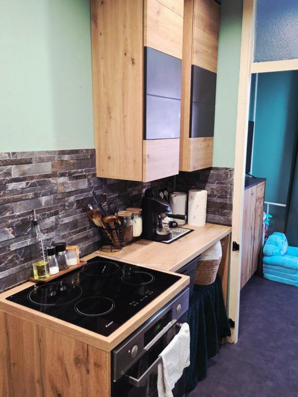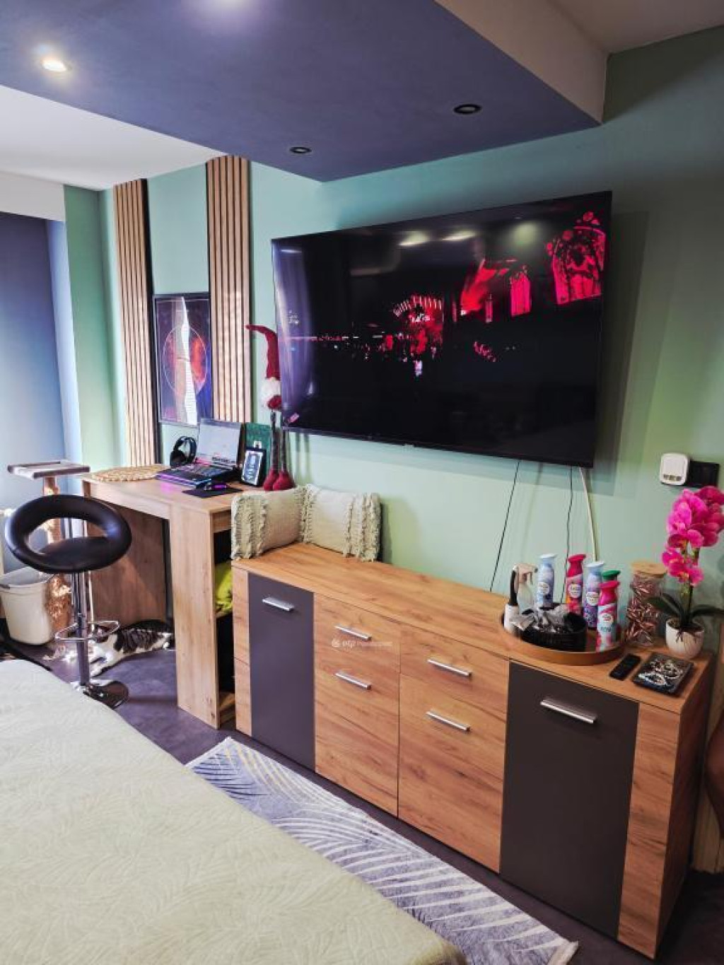 A bútorok nagy része marad (szekrény, ágy, polcok, bárasztal, bárszékek stb.)