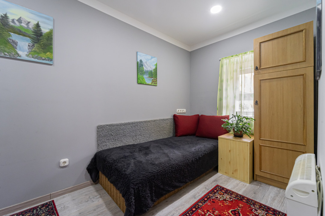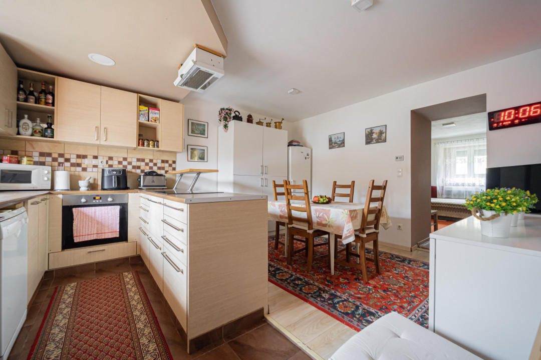 Biztonság és kényelem: Zárt udvar, távirányítású kapu és saját parkolóhely. A környék csendes, polgárőrség és közterület-felügyelet által védett.