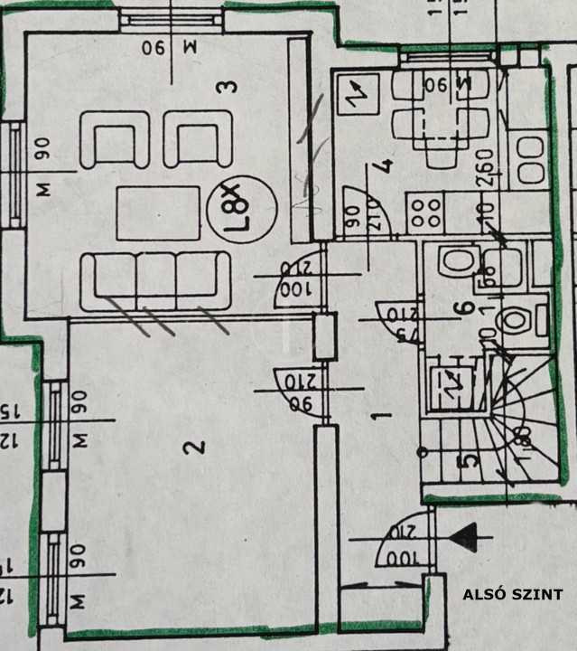 Az ALSÓSZINTEN található az ELŐSZOBA, az ABLAKOS, NAPFÉNYES KONYHA, 2 SZOBA, zuhanyzós FÜRDŐSZOBA.
