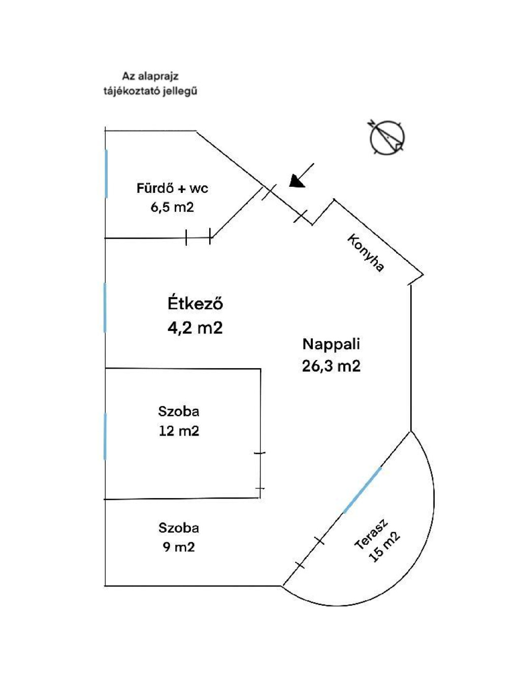 Modern, amerikai konyhás nappali, háló + félszoba, sarokkádas fürdőszoba, valamint egy tágas, 15 nm-es terasz tartozik hozzá, valamint KERTKAPCSOLAT.