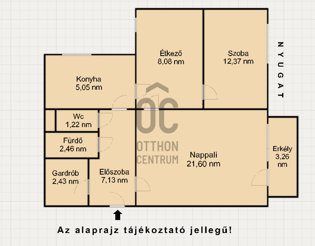 nyugati tájolású, világos lakószobák