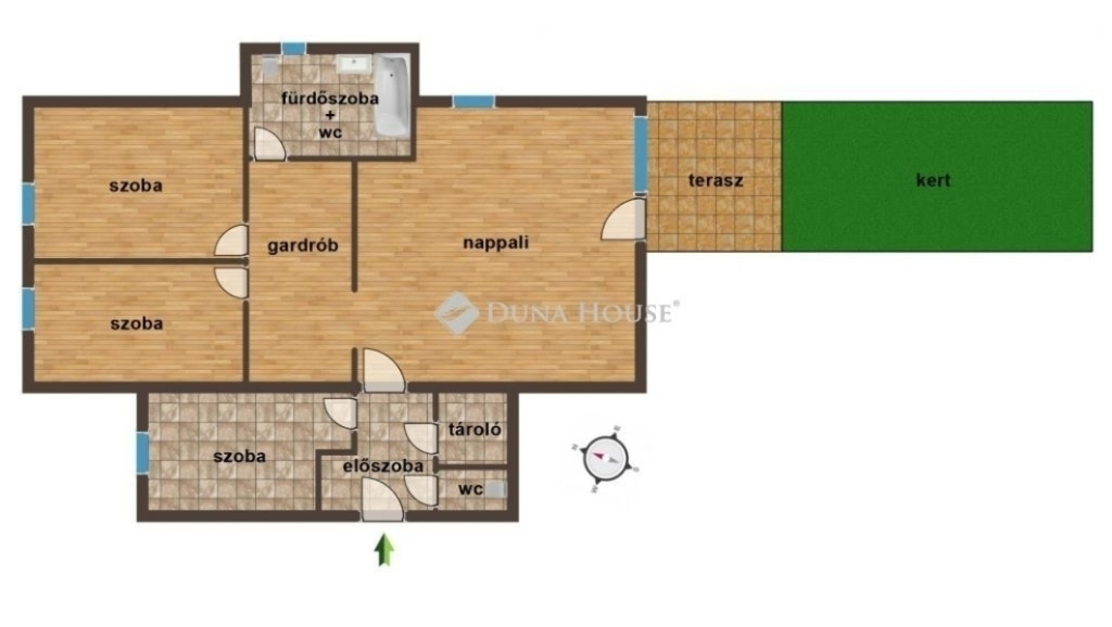 Eladó a 16. kerületben egy 69 nm alapterületű, földszinti, kertkapcsolatos, teraszos tégla lakás a kerület kedvelt részén, az Európa Lakókertben.Épület:A ház tiszta, rendezett, lakóközössége rendes, hosszú évek óta változatlan.3 emeletes társasház, csendes, parkos környezetben.A lakáshoz tartozik egy kültéri, saját használatú gépkocsi beállóhely.Lakás:69 m2-es, földszinti, nappali + 2 szobás.A beépített kádas fürdő és wc külön helyiségben található.A gépészeti rendszer és a nyílászárók kiváló állapotban vannak.Tágas nappaliból nyílik a terasz és a saját használatú, déli tájolású kert.Műszaki:A rezsiköltség kedvező, ami tartalmazza a házközponti fűtést, hideg-és melegvizet, valamint a felújítási alapot.Biztonsági bejárati ajtó, klíma, műanyag nyílászárók.Finanszírozás:Az ingatlan per- és tehermentes, banki hitellel is megvásárolható.Irodánkon keresztül banksemleges ajánlatokkal segítjük a hitelfelvétel során.Környék és közlekedés:A környéken bölcsőde, óvoda, iskola és több gimnázium is található Sétatávolságra van Lidl, pékség, zöldséges, cukrászda.Közel van a Hermina bringa park, forgalomtól elzárt futópálya, kerékpárút vezet a népszerű Naplás tóhoz.Az ingatlan ideális választás családoknak, pároknak vagy befektetőknek egyaránt.Ne maradjon le róla, hívjon bizalommal!