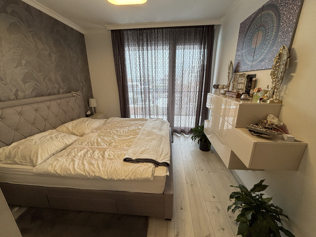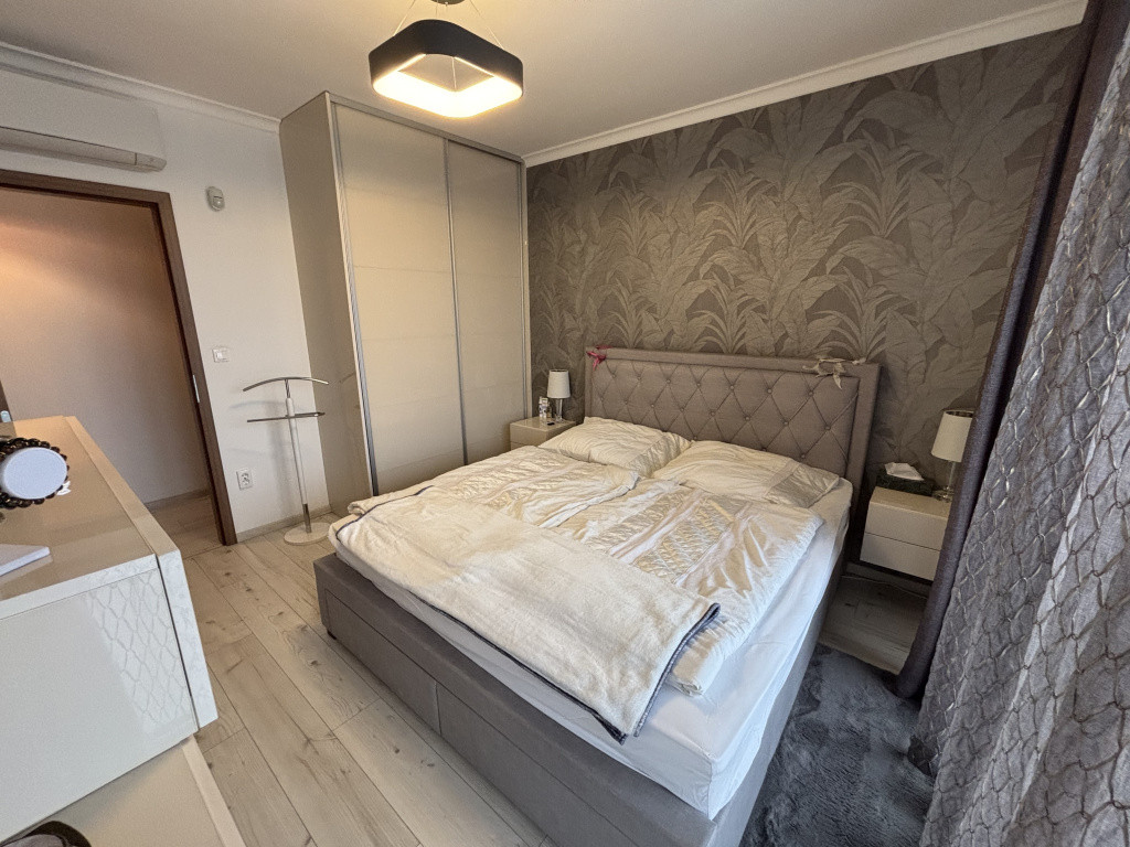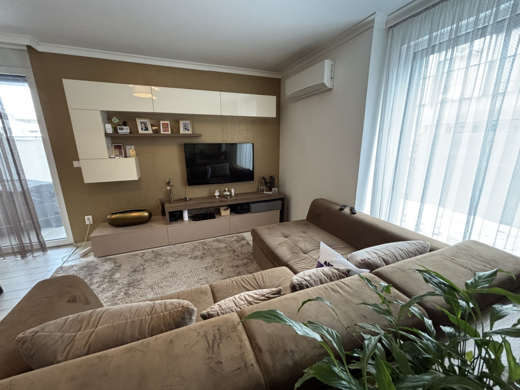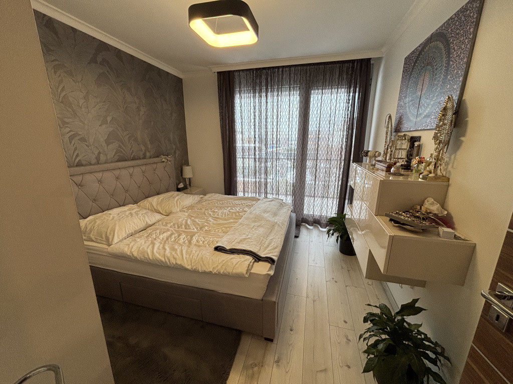 A 82 nm-es lakóterületen amerikai konyhás nappali, 2 hálószoba, 2 fürdő, gardrób és előszoba található. Az igényes beépített bútorok a vételár részét képezik.