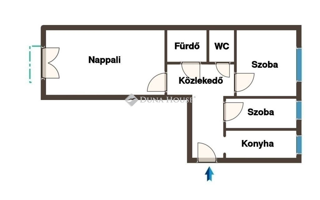 Belépve az ingatlanba egy tágas előszoba fogad, ahonnan jobbra a világos, praktikus elrendezésű konyha nyílik. Továbbhaladva a jobb oldalon két egymás melletti félszoba található, melyek ideálisak hálónak, dolgozószobának vagy gyerekszobának is. A bejárattal szemben kapott helyet a kádas fürdőszoba, mellette pedig külön helyiségben a WC. A lakás központi része a kellemes hangulatú nappali, amely franciaerkéllyel rendelkezik, és gyönyörű kilátást kínál a zöld, fás környezetre.