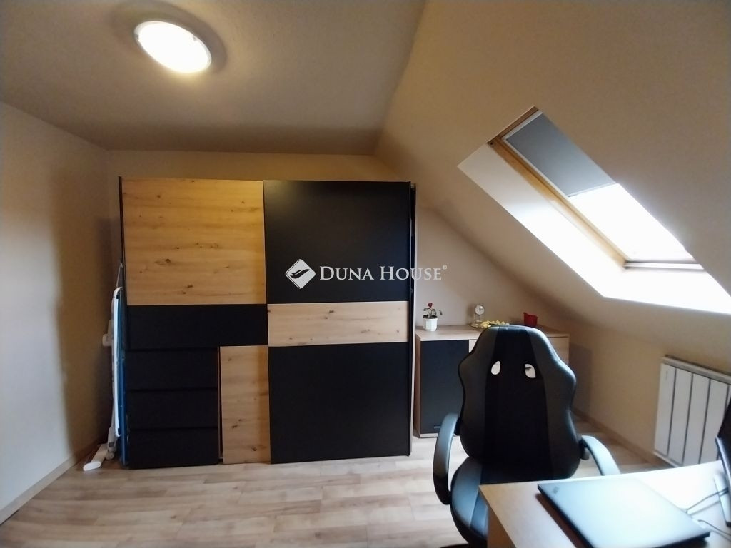 A felső szintről egy praktikus padlástér nyílik, amely tárolási lehetőséget biztosít.