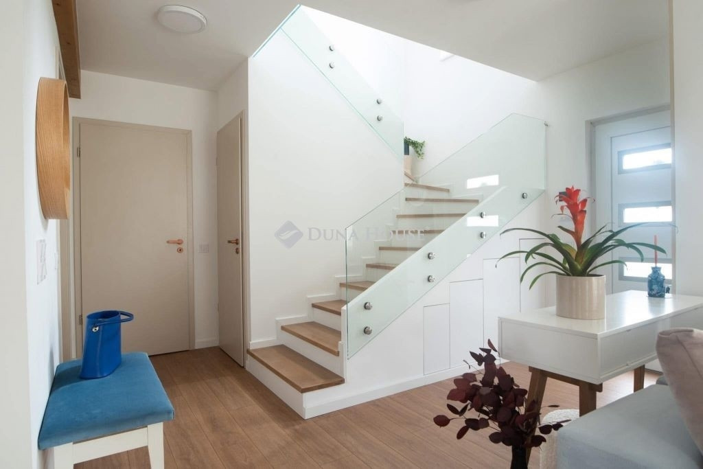 Új építésű, modern családi ház Rákoscsaba-Újtelepen kertkapcsolattal, garázzsal, napelemmel!Eladó egy nettó 120 m²-es, nappali + 4 hálószobás, két szintes, könnyűszerkezetes családi ház Budapest XVII. kerületének egyik legkedveltebb kertvárosi részén, Rákoscsaba-Újtelepen, a Naplás-tó közvetlen közelében.A csendes, zöldövezeti környezet és a modern, magas műszaki színvonalú kivitelezés garantálja a nyugodt, kényelmes mindennapokat.Főbb jellemzők:- Nettó lakóterület: 120 m²- Telek mérete: ~440 m²- Elrendezés: nappali + 4 hálószoba két szinten- Fűtés: Norvég NOBO elektromos infra panelek- Klíma minden helyiségben előkészítve, 1 db inverteres klíma beépítve (ár tartalmazza)- Fedett garázs + térkövezett beálló- Közvetlen kertkapcsolat, teraszFelszereltség (az árban benne van):- Beüzemelt napelemrendszer energiatakarékos üzemeltetés- NOBO fűtőpanelek minden helyiségben- 1 db beépített inverteres klíma, további klímák előkészítve- Riasztórendszer, kamerás kaputelefon- Motoros garázskapu és kertkapu, távirányítóval- Automata öntözőrendszer, füvesített kert- Automata külső világítás- Burkolatok és szaniterek még szabadon választhatók teljesen személyre szabható otthon!Elhelyezkedés, környezet:- Csendes, családbarát utca Rákoscsaba-Újtelepen- A Naplás-tó közelsége lehetőséget ad kikapcsolódásra, sportolásra, sétákra- Kiváló közlekedés: könnyű elérhetőség a város többi részére, közeli tömegközlekedési lehetőségekkel (vasút, busz)Ideális választás:- Fiatal pároknak, családalapítás előtt- Többgyermekes családoknak- Idősebbeknek, akik nyugodt, kertvárosi környezetre vágynak- Mindenkinek, aki modern, költséghatékony, környezetbarát új építésű otthont keresTovábbi részletekért és személyes megtekintésért keressen bizalommal!Ez a ház tökéletes ötvözete a modern technológiának és a kertvárosi nyugalomnak.