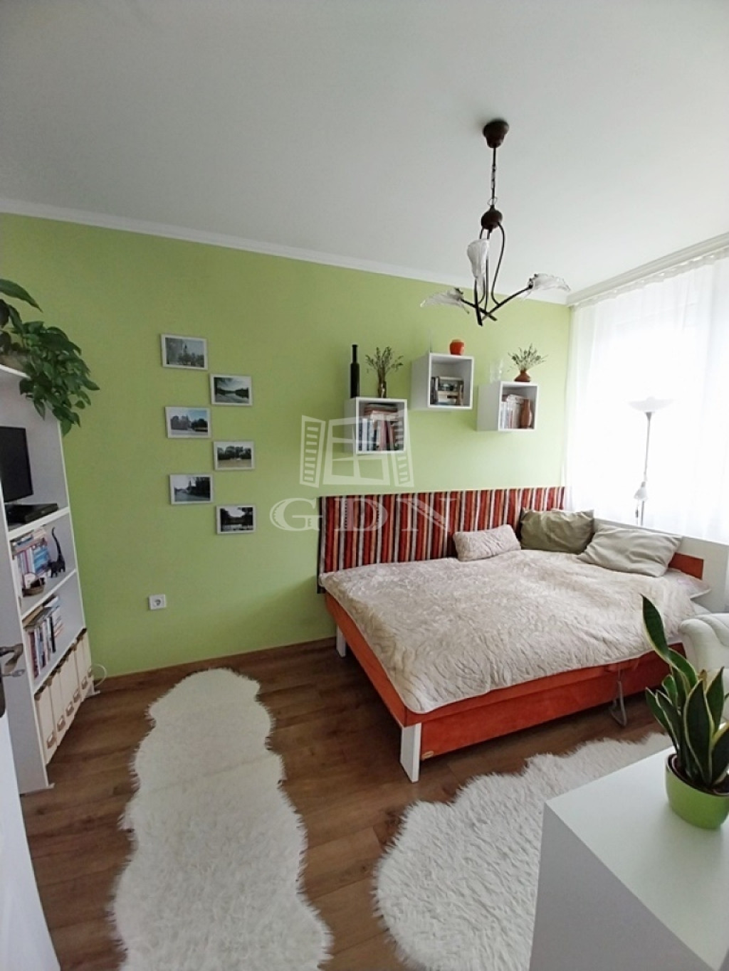 A nappali szobából lehet átlépni a 12.8 nm-es hálószobába, a hálószobához kapcsolódik a 2 nm-es gardrób tároló helyiség.
