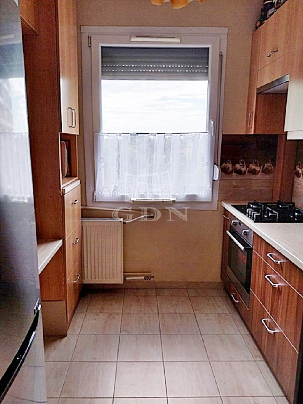 A lakásba lépve egy élhető 3.8 nm-es előszobába érkezünk, jobb oldalon találjuk a felújított ablakos,új beépített bútorral rendelkező konyhát.
