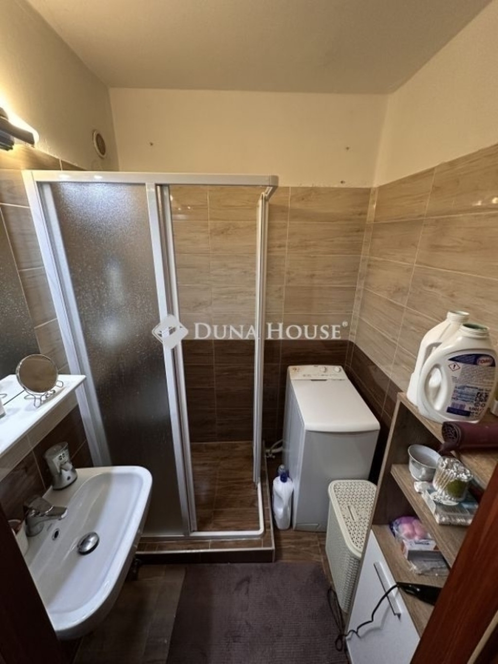 A közlekedő végén található a fürdőszoba és a külön helyiségben elhelyezkedő WC, míg a folyosóról nyílik a másik félszoba is, így a lakás elrendezése praktikus, jól élhető és családbarát.