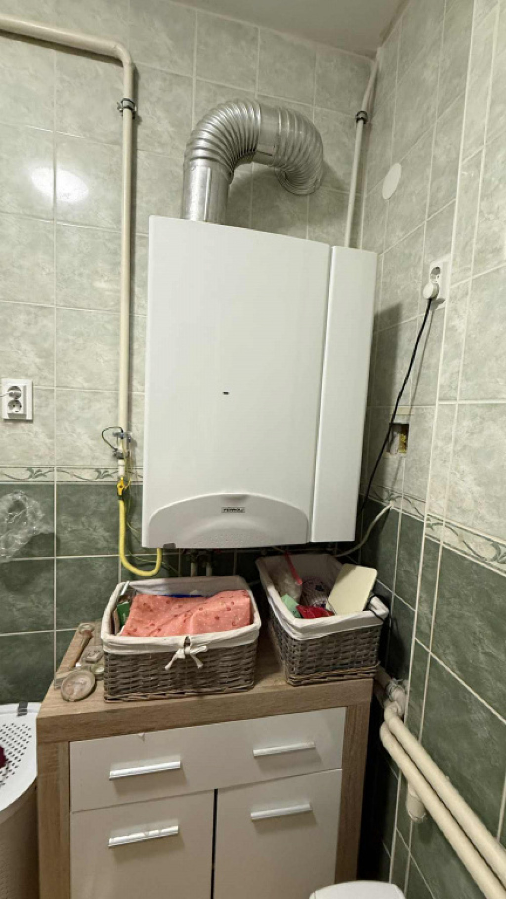 A lakás fűtését gázüzemű kombi cirkó kazán biztosítja radiátoros hőleadással, amely egyben a használati meleg víz ellátásáról is gondoskodik.