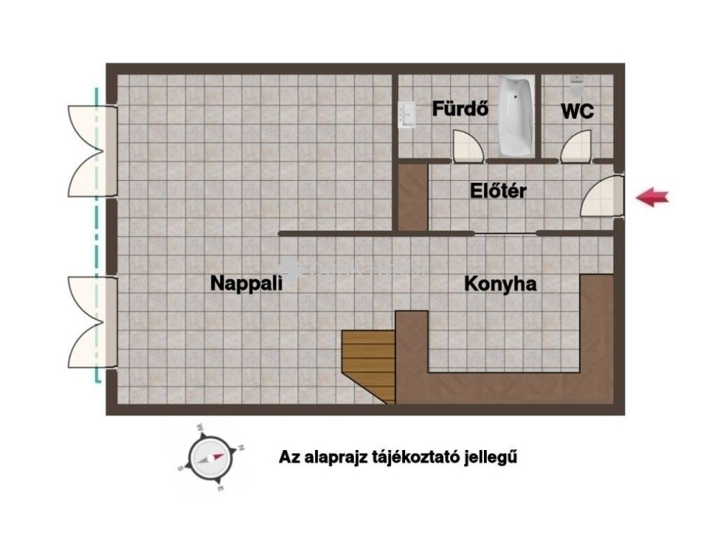 Jobbra nyílik a fürdőszoba, külön wc.