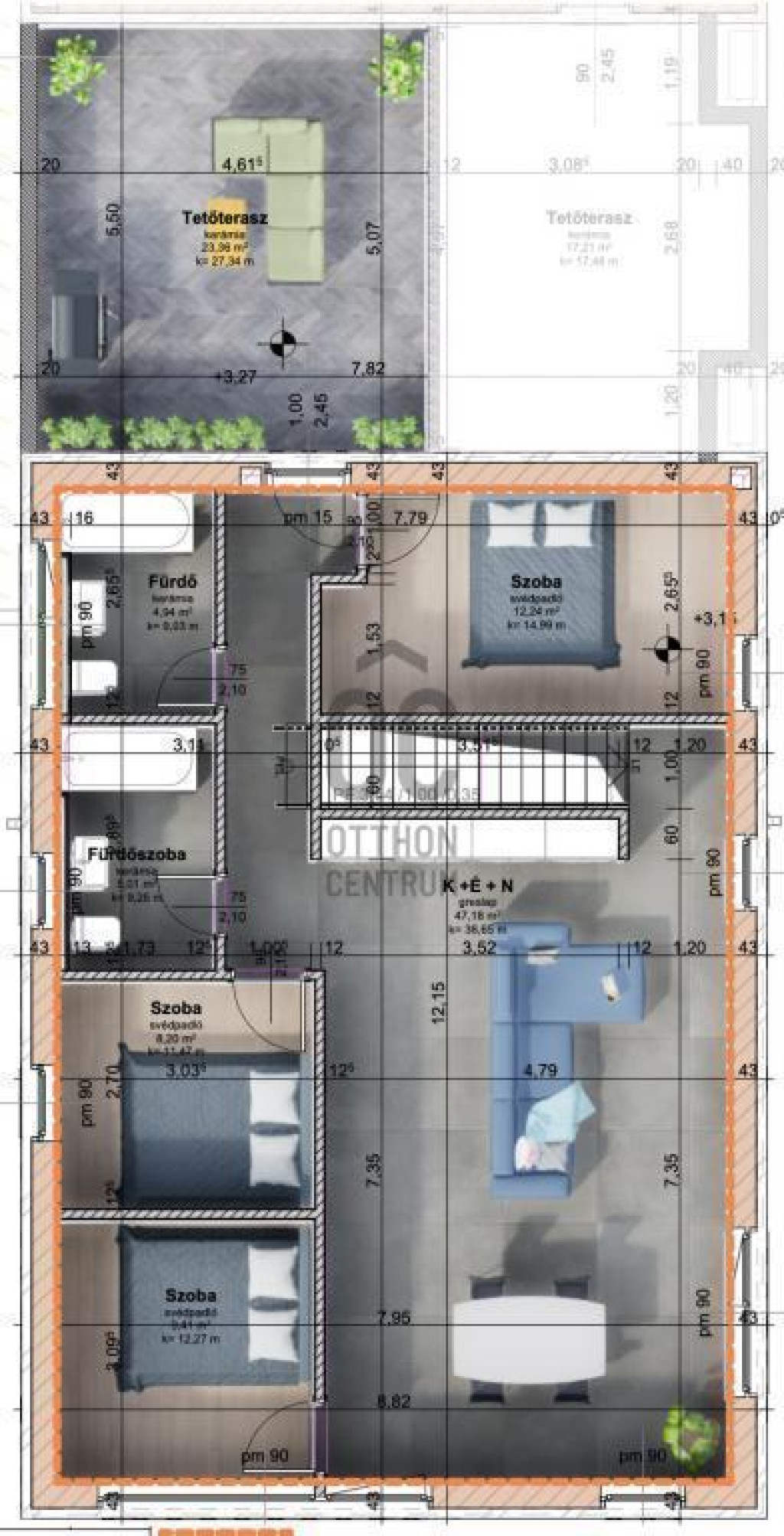 Igény esetén helyiségenkénti termosztátos vezérlés és okosotthon rendszer is kialakítható.