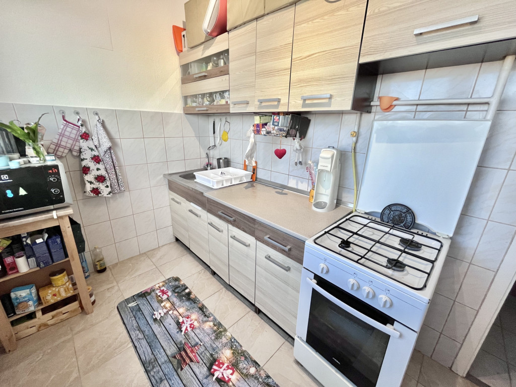 - Tágas, ablakos konyha beépített bútorral