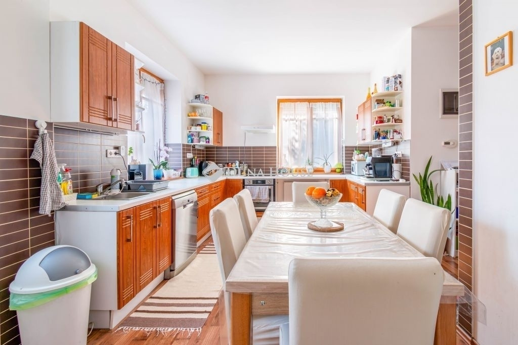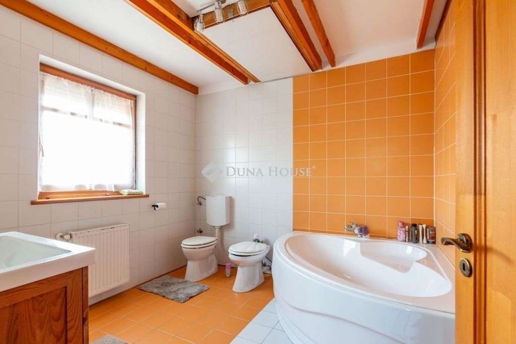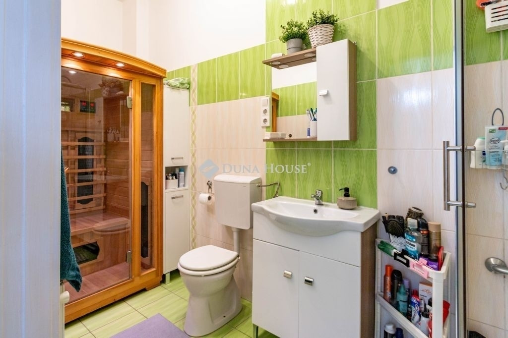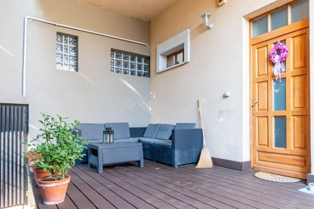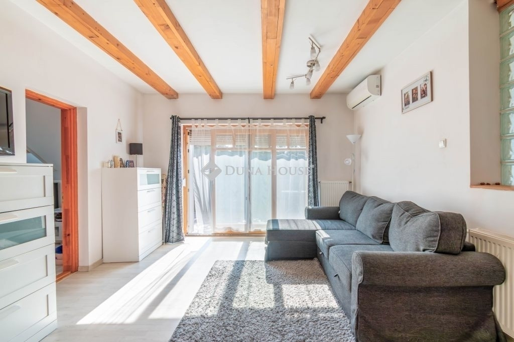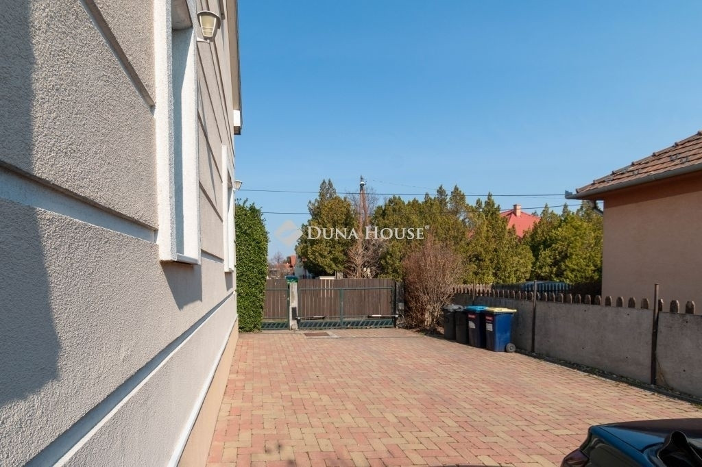 A lakóhely kényelmét fokozza a beépített konyha, a riasztórendszer, és nem utolsósorban a légkondicionáló berendezés, amely a nyári hónapokban biztosítja a hűvöset. Az udvaron térkövezett rész található, ahol egészen négy autó számára is van parkolóhely. Az ingatlanhoz tartozik egy 35 m²-es pince is, ami további tárolási lehetőséget kínál. Két terasz kínál kellemes kikapcsolódást a szabadban, mindkét szinten.