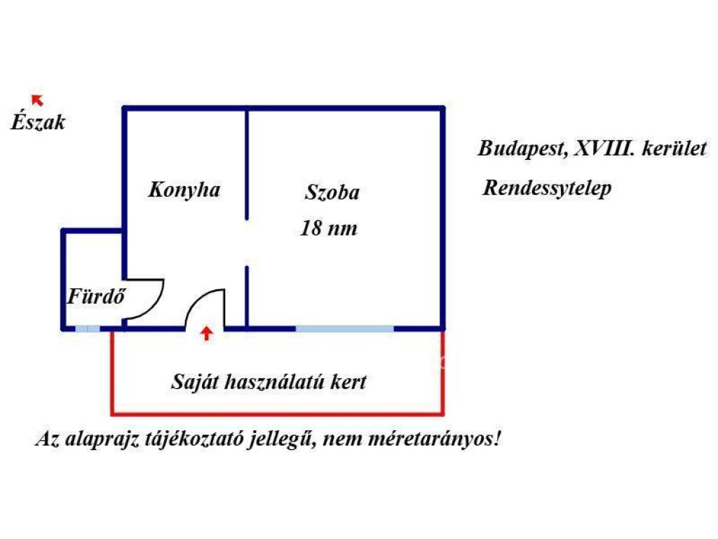 Budapest, XVIII. kerület Rendessytelepen ELADÓ egy 30 nm-es , átlagos állapotú, saját kertkapcsolatos, földszinti, 1 szobás garzonlakás.