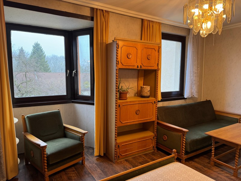 A szobák új PVC burkolatot kaptak, az étkező kerámia lappal burkolt.