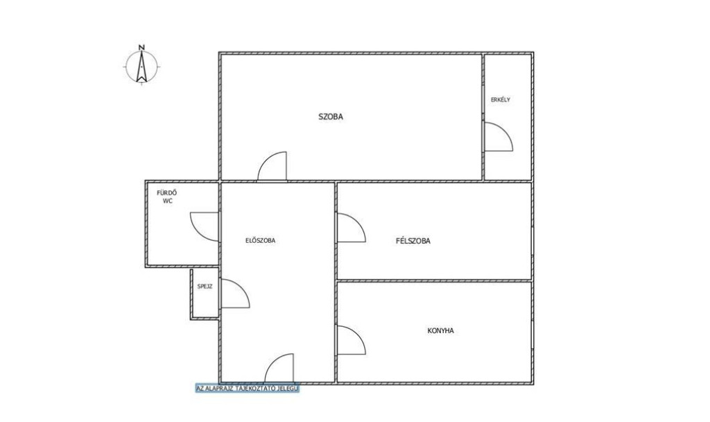 Az ingatlan alapterülete 46 m2, elosztása: