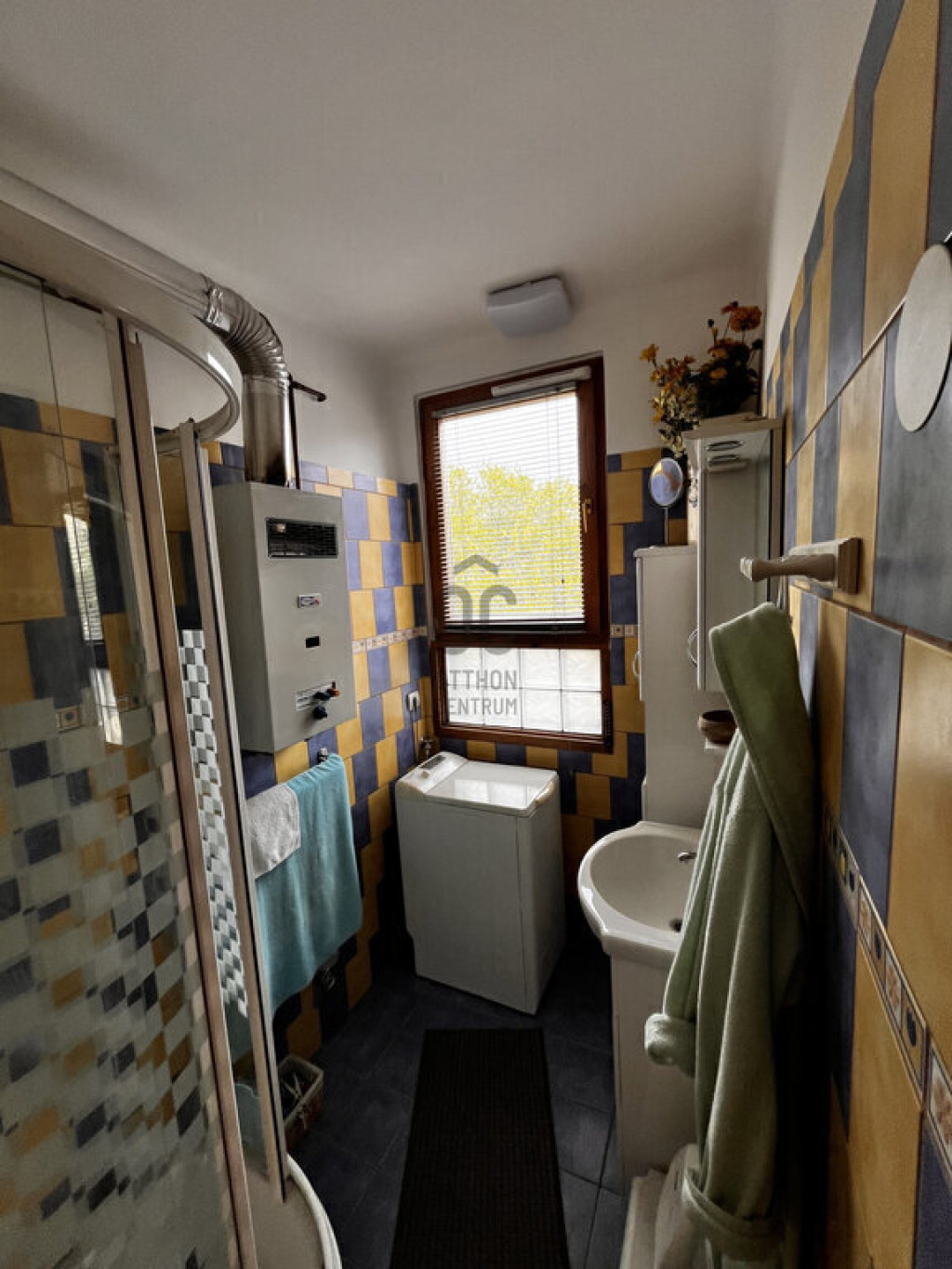 A fűtés gázkonvektorral megoldott.