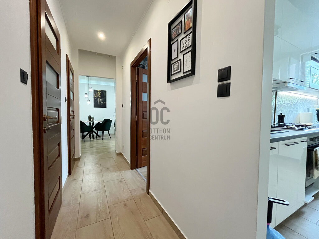 A lakás rendkívül jó elosztású, minden helyiség külön nyílik, ami ebben a méretkategóriában különösen értékes.