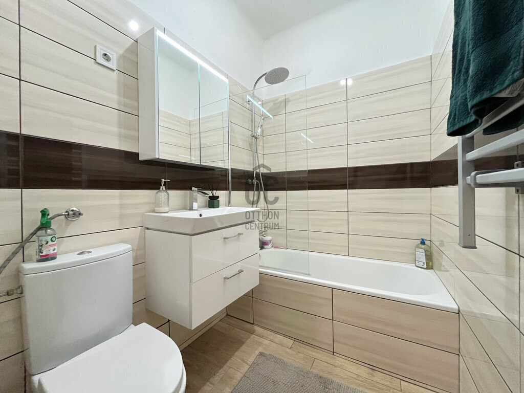 A FÜRDŐSZOBA szépen felújított, kádas kialakítású, és egy helyiségben található a mellékhelyiséggel. Letisztult, modern megjelenése időtálló.