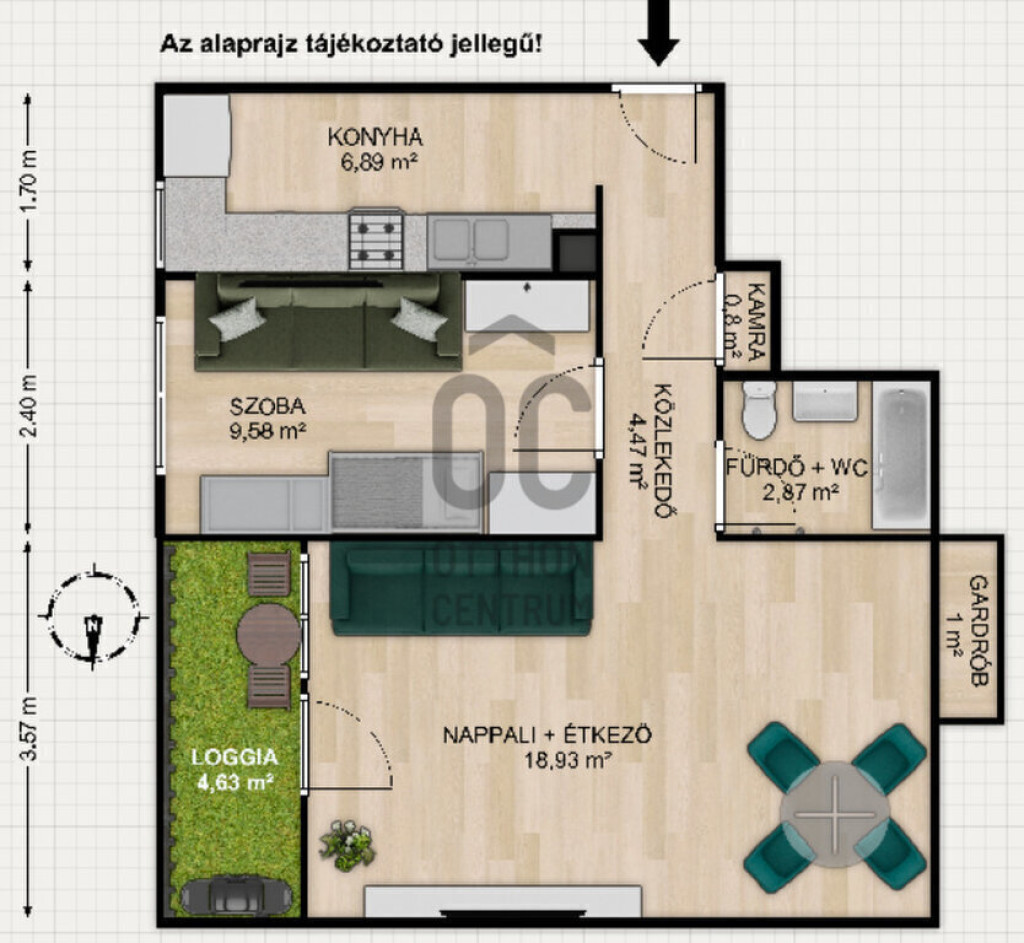 A nappaliból nyílik a hangulatos LOGGIA, amely ideális helyszín pihenésre, nyugodt reggeli kávézáshoz vagy egy kis zöld sarok kialakítására.