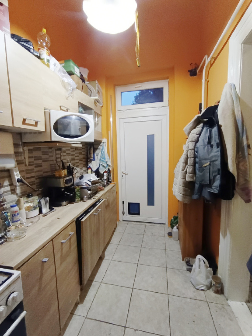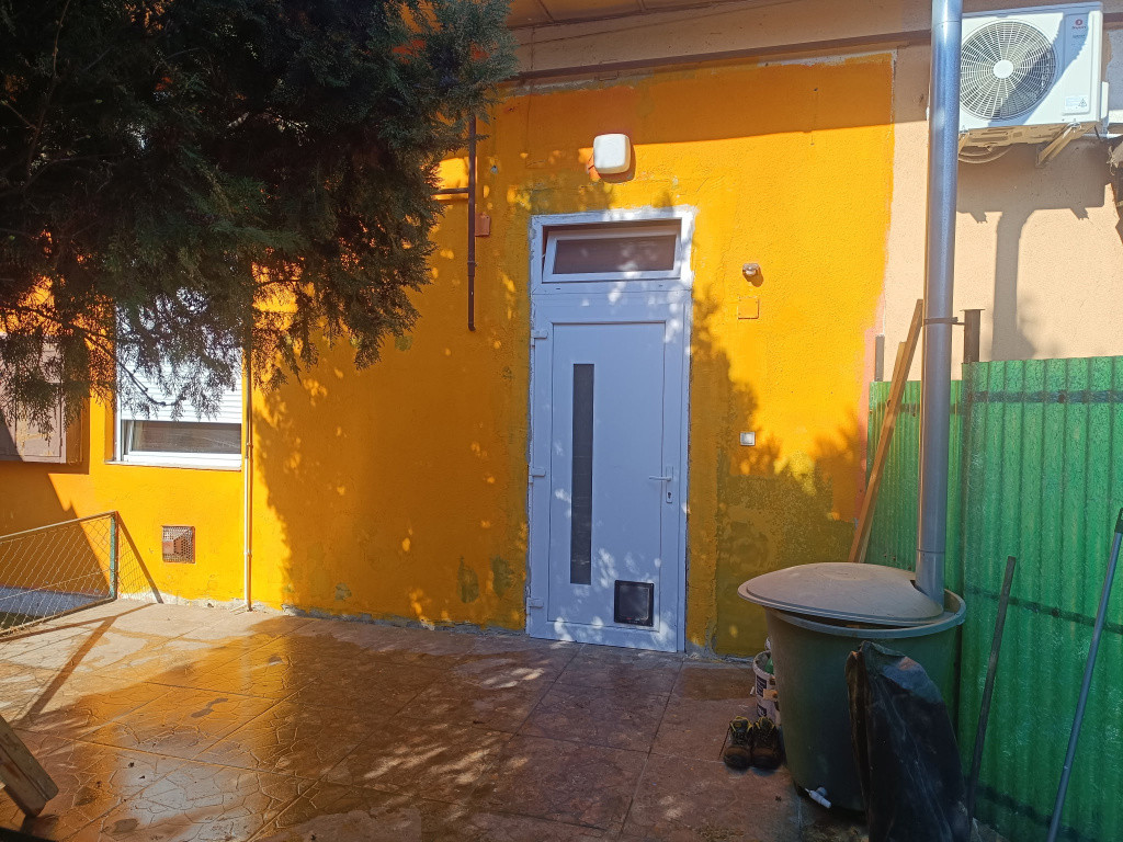 - Új műanyag bejárati ajtó, felül ablakos, alul cica/kutya ajtóval