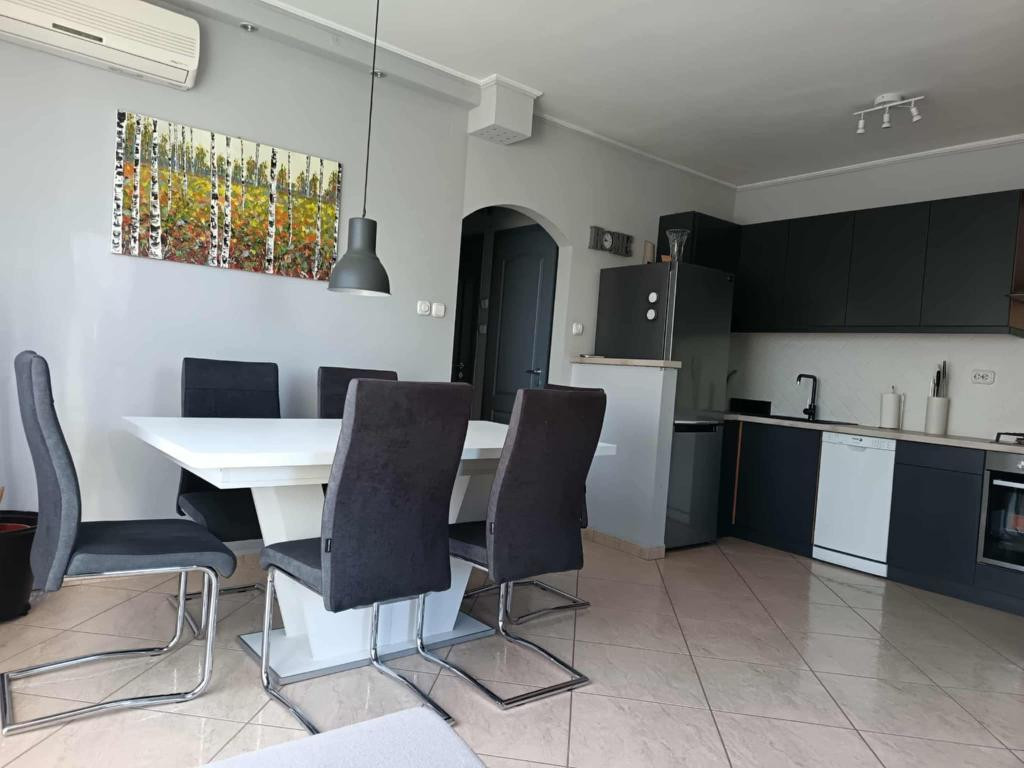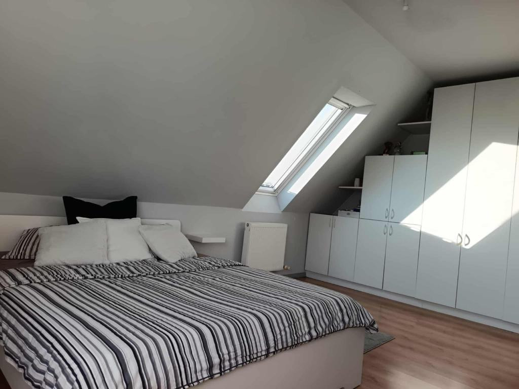 Kellemes letisztult a színvilága, világos, modern a bútorzat.A nappaliban egy dupla ajtóval nyíló francia erkély nyílik az udvarra. A hatalmas hálószoba akár két szobává alakítható, mindkét oldalon ablakkal.