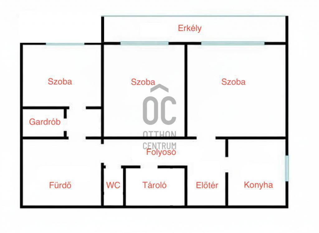 - 3 szobával és egy nagy erkéllyel (6m²),