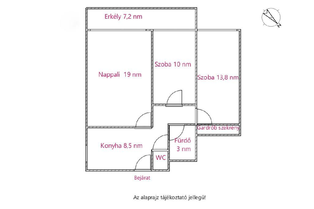 - 3 külön nyíló szoba nagy ablakfelületekkel
