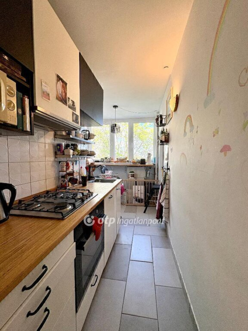 A világos konyha-étkező barátságos, jól használható teret biztosít a mindennapokhoz. Az ingatlan szinte azonnal költözhető, ráadásul tehermentes és egy tulajdonostól eladó.