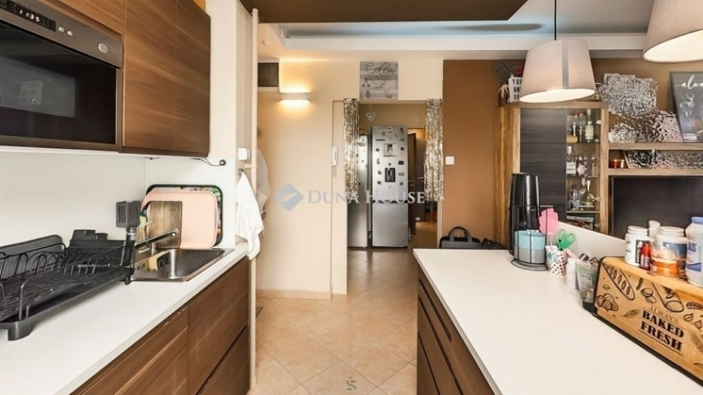 ben történt a teljes áttervezés és felújítás amikor is helyiségek, vizesblokkok is át lettek mozgatva, cserélve a víz és áram vezetékek, sőt a villanyhálózat korszerűsítése is megtörtént, külön körökre osztva a helyiségeket, biztonsági mechanikák beiktatásával. Cserélve lett minden burkolat, nyílászáró, beltéri ajtók. Egy teljesen új konyha lett kialakítva, bútorokkal, beépített gépekkel. A WC-ben és a fürdőben külön mozgásra kapcsolható hangulatfény gondoskodik a kényelemről. A tágas nappalit a mennyezetbe épített, irányítható LED világítás teszi hangulatossá. Minden ablaknál redőnyök és szúnyoghálók lettek felszerelve és két klíma is biztosítja a nyári hónapokban kellemes közérzetet. A modern beltéri ajtók a jobb hangszigetelés miatt, az aljukban rejtett küszöbbel szereltek.
