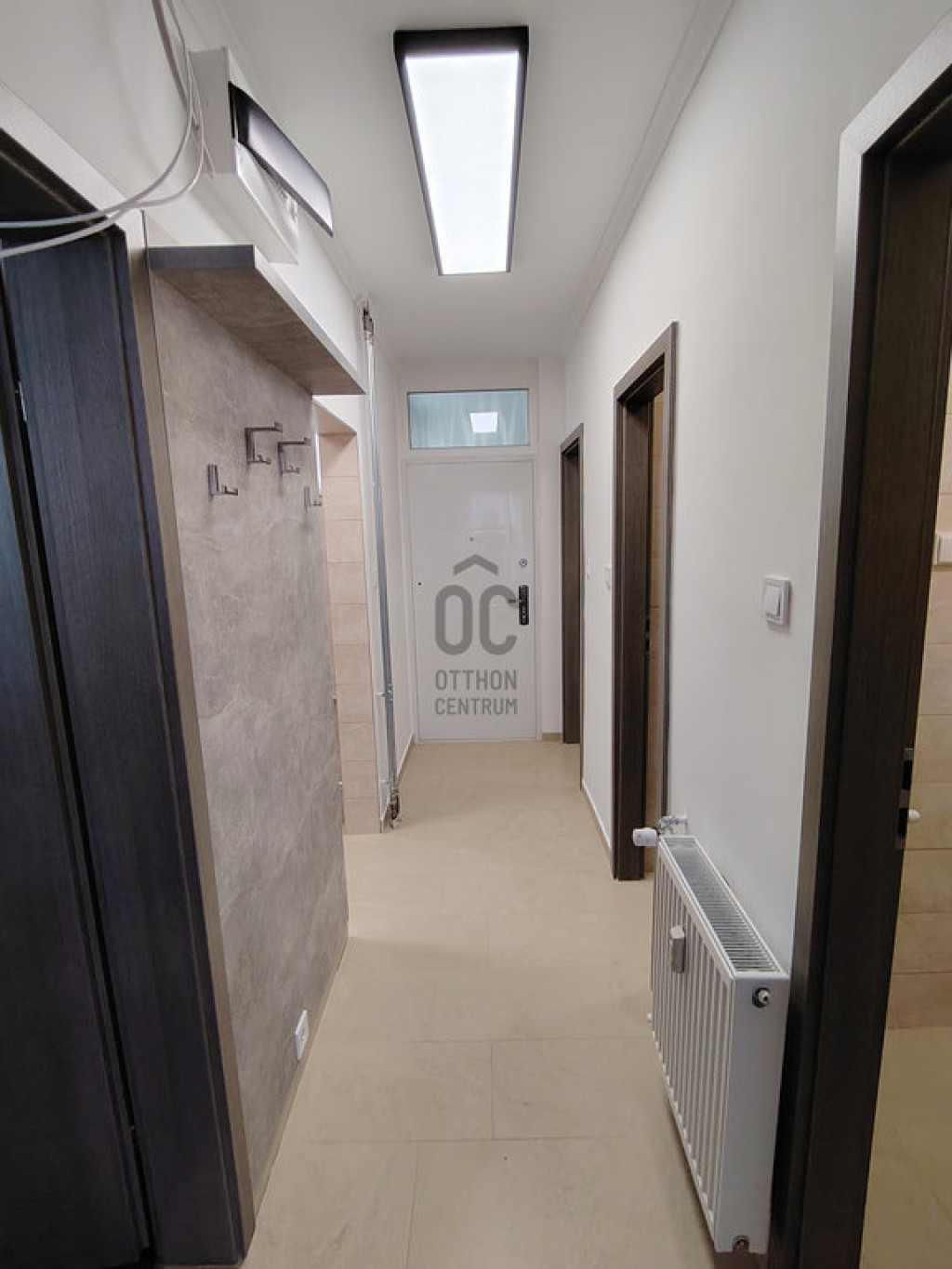 A lakás egy éve teljes körű felújításon esett át. A szobák világosak, praktikus elosztásúak. Mindkét szobából kijárat nyílik a 10 m²-es erkélyre, ahonnan városi panoráma tárul elénk, tökéletes reggeli kávéhoz vagy esti pihenéshez.