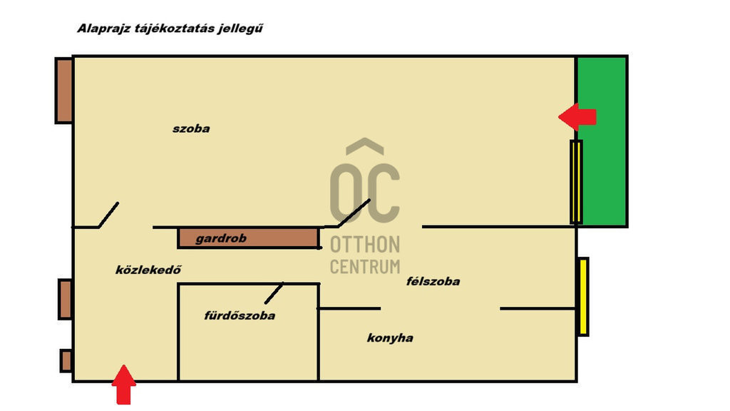 - 1 szoba+ félszoba (hall)