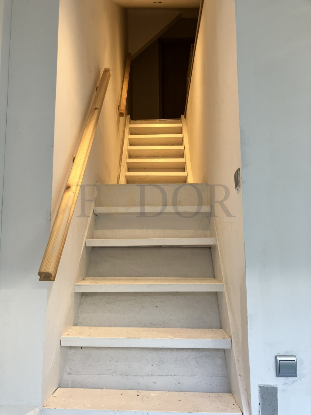 A teraszról lépcső vezet a beépített tetőtérbe, ahol egy teljes értékű szoba és egy gardrób található.