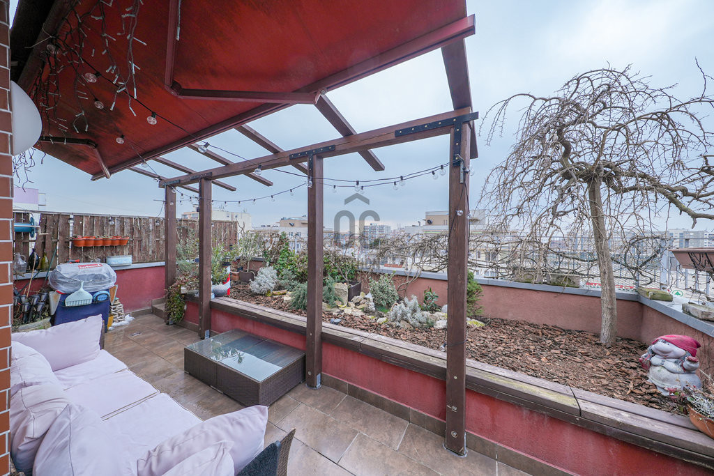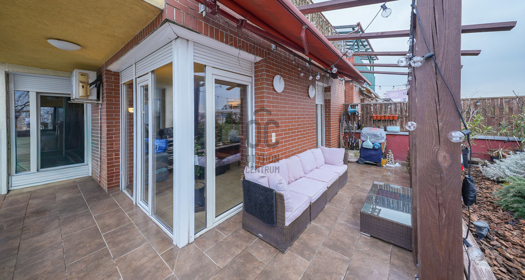 Az ingatlanhoz tartozik egy lenyűgöző, összesen 39 nm-es terasz, amely kertkapcsolatos. Ez a tetőterasz igazi oázis lehet a pihenésre, baráti összejövetelekre, vagy akár egy kis kertészkedésre is.