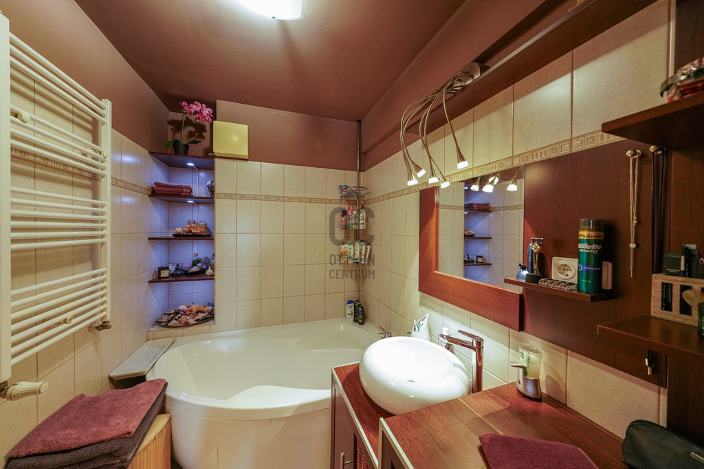 A tágas fürdőszoba, a beépített bútorok és szekrények pedig maximálisan kihasználják a rendelkezésre álló teret.