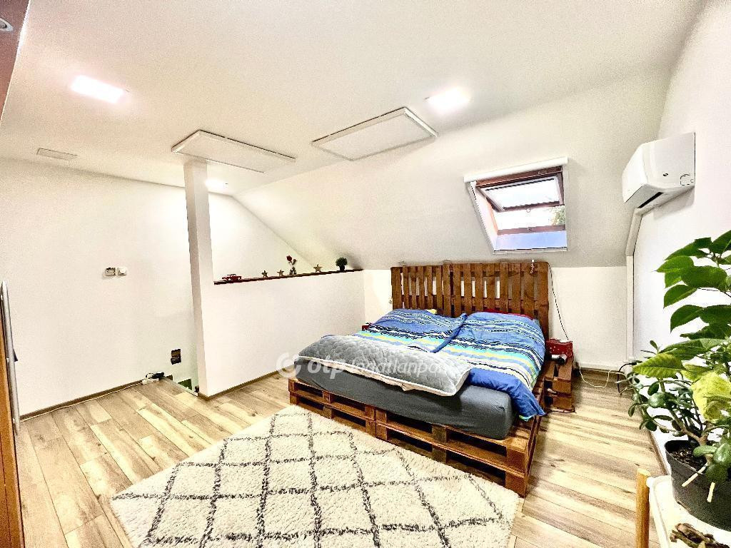 A lakás alsó szintjén egy amerikai konyhás nappali, egy modern fürdőszoba, egy előszoba és egy praktikus tároló található. Az emeleten jelenleg egy nagy, egybenyitott szoba van, amely igény szerint könnyedén két külön nyíló hálószobává alakítható.
