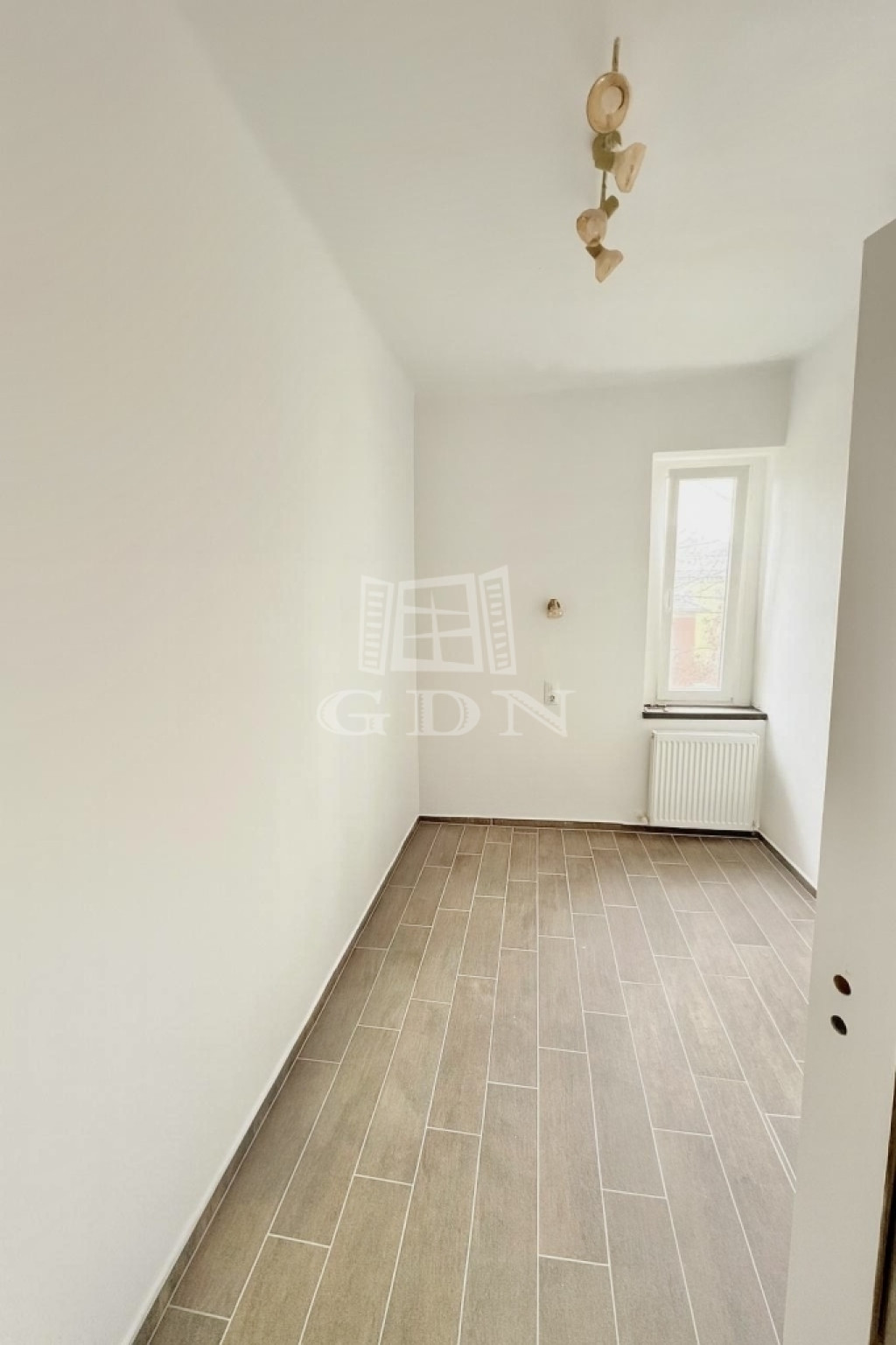 Az ingatlan amerikai konyhás nappaliból, egy nagyobb és egy kisebb szobából áll. A fürdőszoba káddal felszerelt, a WC külön helyiségben található. A lakás minden helyisége egy hosszabb folyosóról nyílik, így a terek jól elkülöníthetők. A lakáshoz egy 3 m²-es, zárható pince is tartozik.