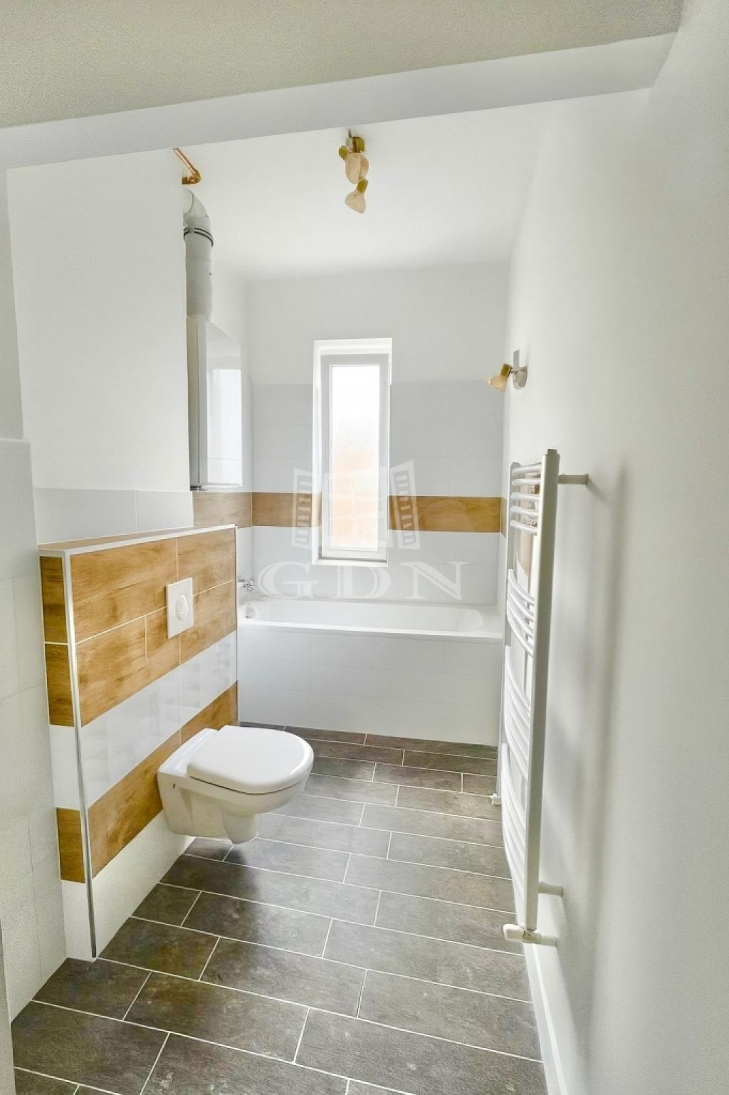 A fűtést és a meleg víz ellátást korszerű kondenzációs kombi gázkazán biztosítja. A kertre néző kilátás nyugodt, kellemes környezetet teremt a mindennapokhoz.