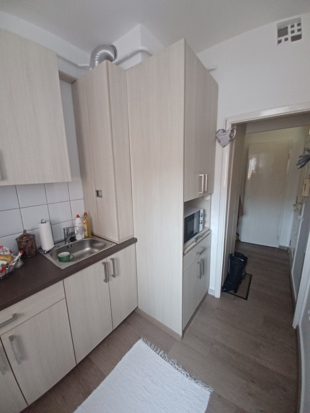 Fűtése gázkonvektor, a meleg vizet a konyhában elhelyezett gáz vízmelegítő biztosítja.